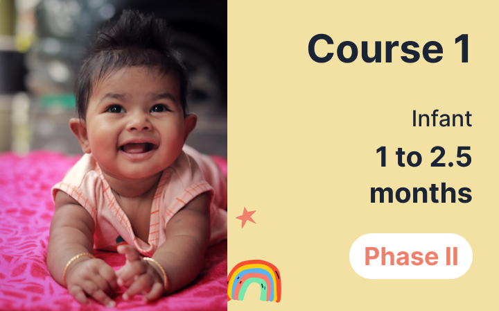 Note: You joined this Course when your child was 1 month to 2.5 months old. Please note that you will continue with the subsequent couses in this Phase II until your child is 6 years old. When your child is 6 years old, you will start with the courses in Phase VIII.